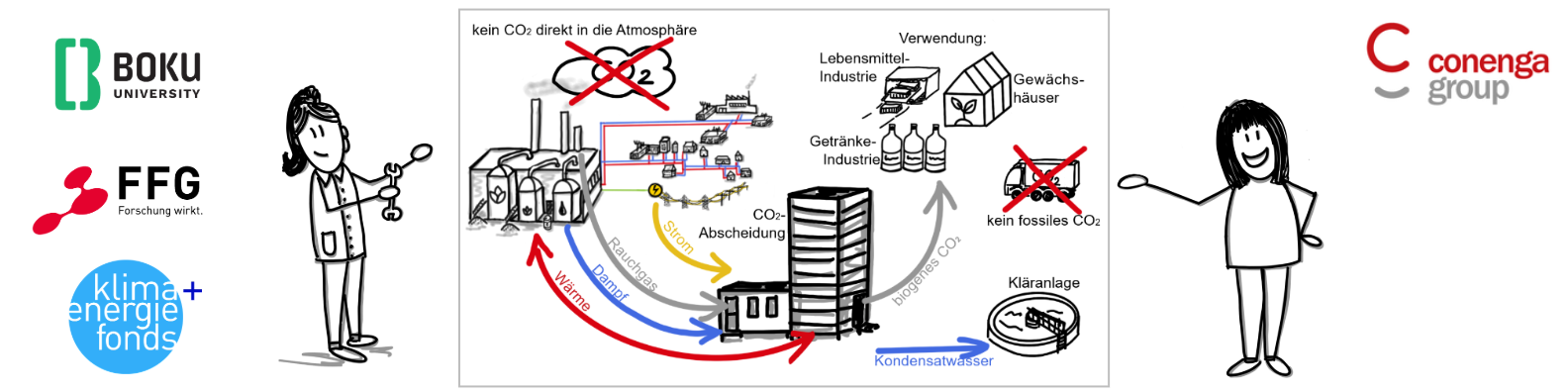 Ziel: Sondierung der techno-ökonomischen Machbarkeit einer Branchenlösung (Lebensmittelindustrie) zur Abscheidung und Nutzung von CO2 auf Grundlage der TSA-Technologie. Dieses Projekt wird aus Mitteln des Klima- und Energiefonds und des Bundesministerium für Innovation, Mobilität und Infrastruktur gefördert und im Rahmen des Energieforschungsprogramms 2025 durchgeführt.