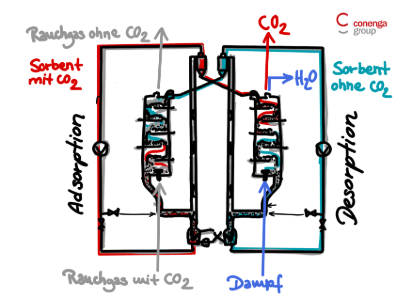 Bei der TSA-Technologie wird CO₂ durch Adsorption an Feststoffe gebunden und durch Temperaturerhöhung in der Desorberkolonne wieder freigesetzt. Die CONENGA Group entwickelt TSA-Anlagen für industrielle Anwendungen weiter.