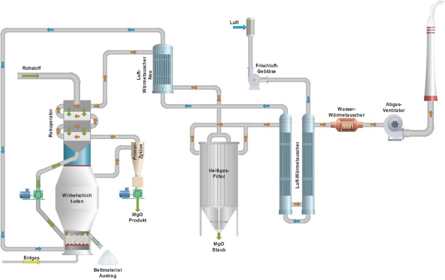 MgO calcination from raw stone (MgCO3) with grain size < 8mm in fluidized bed reactor Image source: Styromag, KON Chemical Solutions